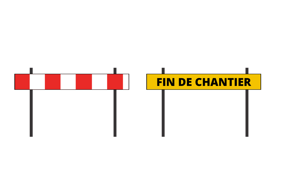 Pour fermer une voie en cas d’obstacle empêchant la circulation ou de travaux, vous pouvez rencontrer les barrages qui permettent de fermer totalement la voie pour qu’aucun véhicule ne puisse passer. Ces barrages seront de couleurs rouge et blanche ou bien jaune.