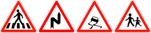 Dits de “présignalisation”, ces panneaux danger sont de forme triangulaire et sont caractérisés par une bordure rouge pour annoncer une mise en garde immédiate. Le danger peut être plus ou moins proche et de sources différentes. Par convention on dit qu’ils sont placés 50 m avant en agglomération et 150 m hors agglomération.