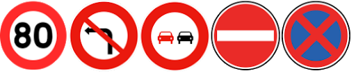 Ces panneaux de forme circulaire véhiculent tous un message d’interdiction formelle. Ils sont auréolés de rouge pour être plus percutants pour les usagers.