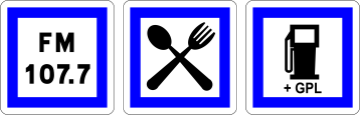 Il s’agit de panneaux d’indication fournissant une information à tous les usagers. Ainsi, de forme carrée et de couleur bleue, ces panneaux liés à des usagers peuvent être liés aux tramways, aux bus, etc.