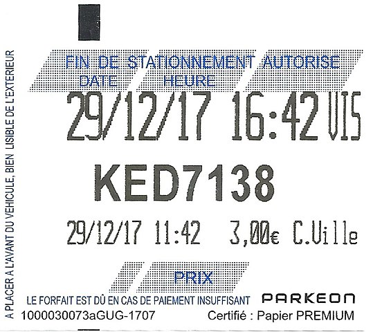 Ce ticket fait office de facture, et de preuve en cas de contrôle par les Agents de Surveillance de la Voie Publique. Il vous suffira alors de le placer dans votre voiture, bien en vue à travers le pare-brise.